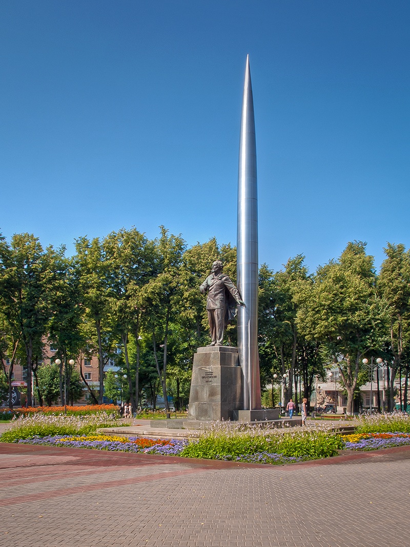 Эта часть города тесным образом связана с деятельностью Константина Эдуардовича Циолковского. Неподалеку он жил, и именно на этой площади находится памятник, ставший настоящим символом города, своего рода вторым гербом Калуги. Он представляет собой высокий постамент из серого гранита, на котором возвышается бронзовая скульптура ученого-космиста, динамично изображенного как бы шагающим в будущее. Его взор устремлен ввысь, к звездам, а за спиной, как смысл всей его деятельности и творческих замыслов, возвышается серебристая ракета из нержавеющей стали. Величественный памятник «космическому штурману» очень эффектно выглядит вечером, когда сквер освещен прожекторами, придающими ракете «стартовый» вид. На закладке памятника в 1957 году присутствовал главный конструктор страны С.П. Королев.