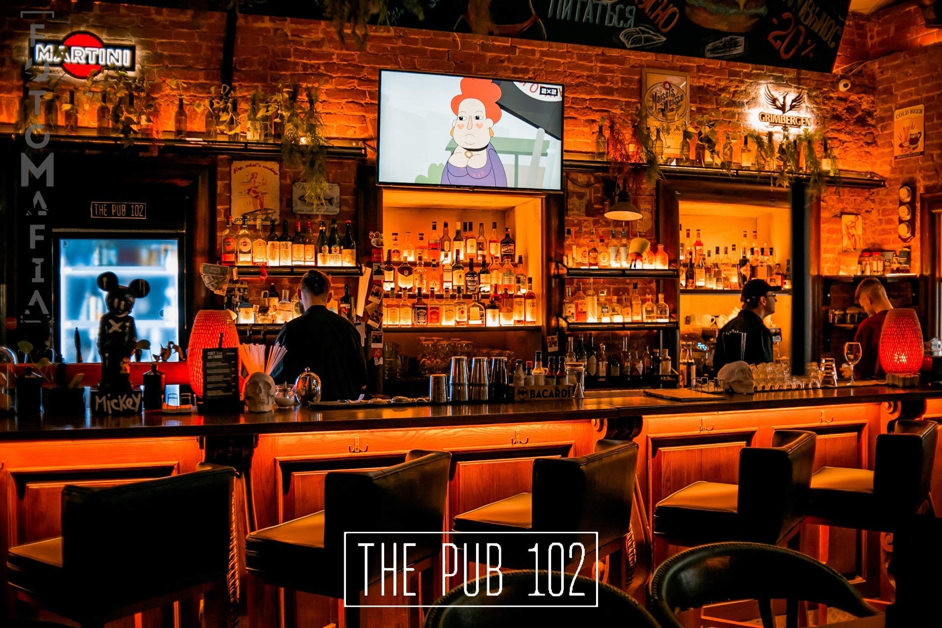 THE PUB 102 — был открыт в 2007 году, объединив гастрономию и барную культуру. Достаточно быстро небольшой бар трансформировался в полноценный Ресторан с тремя залами и летней верандой, который вот уже на протяжении 10 лет является лидером среди Ресторанов города по мнению самих Калужан и Гостей нашего города.