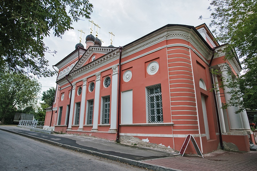 Четверик храма имеет форму куба и сохранил на себе следы архитектуры XVII века. Его четырехскатная кровля увенчана пятью главами, сгруппированными «купой» в центре крыши, а не поставленными по краям, как это было принято в XVIII веке. Главы имеют древнюю шарообразную форму, изначально были покрыты «чешуёй». Элементы декора фасада четверика во многом схожи с Георгиевским собором «за верхом». В верхней части храм богато орнаментирован узорами, как это встречается часто в московских храмах XVII века.