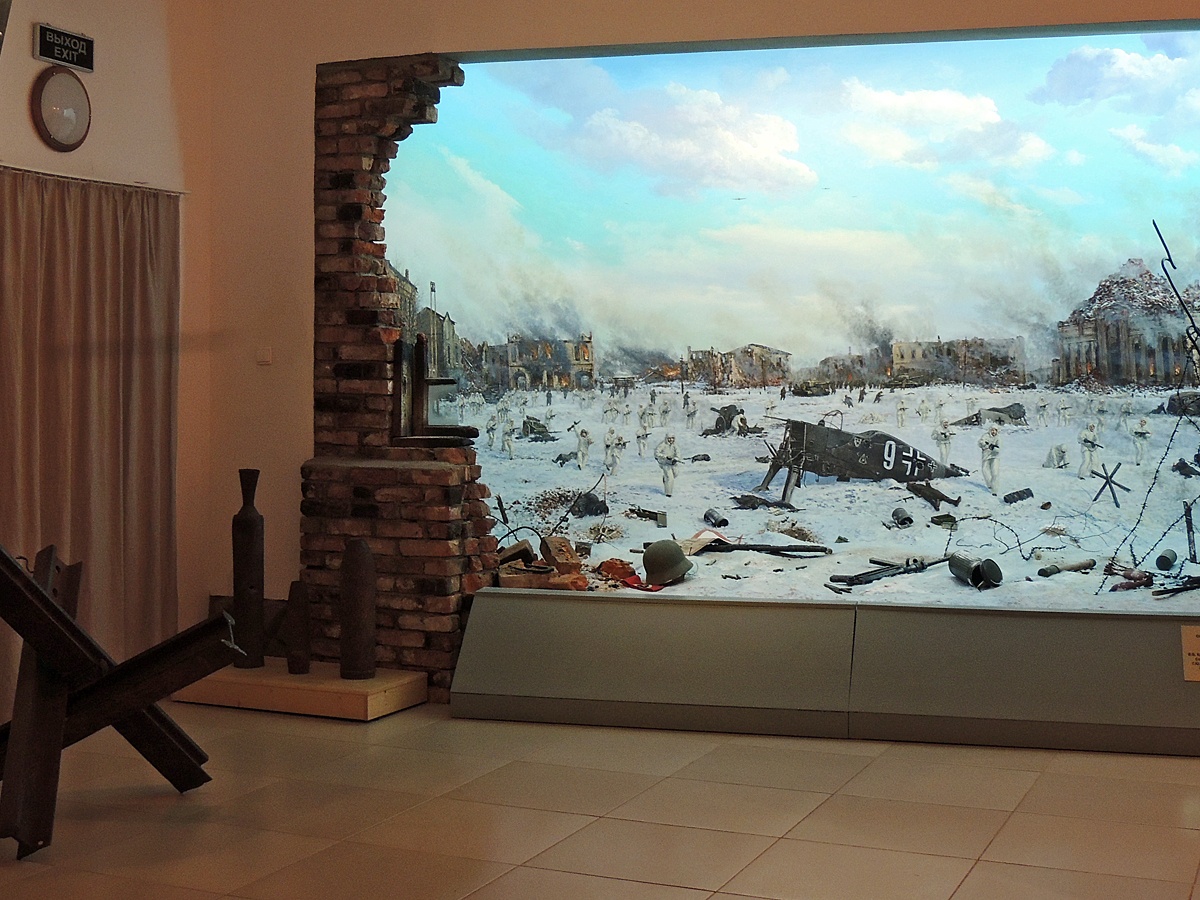 - В музее можно сфотографироваться в военной форме с автоматом на фоне диорамы.