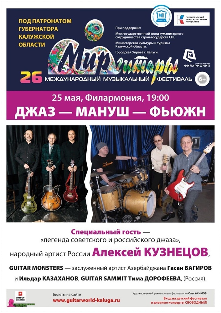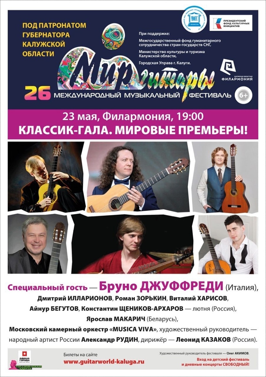 15 стран мира – такова география 26-го Международного музыкального фестиваля «Мир гитары», который Калуга встречает с 22 по 26 мая. По традиции концерты пройдут на сцене Калужской областной филармонии и в Калужском доме музыки.