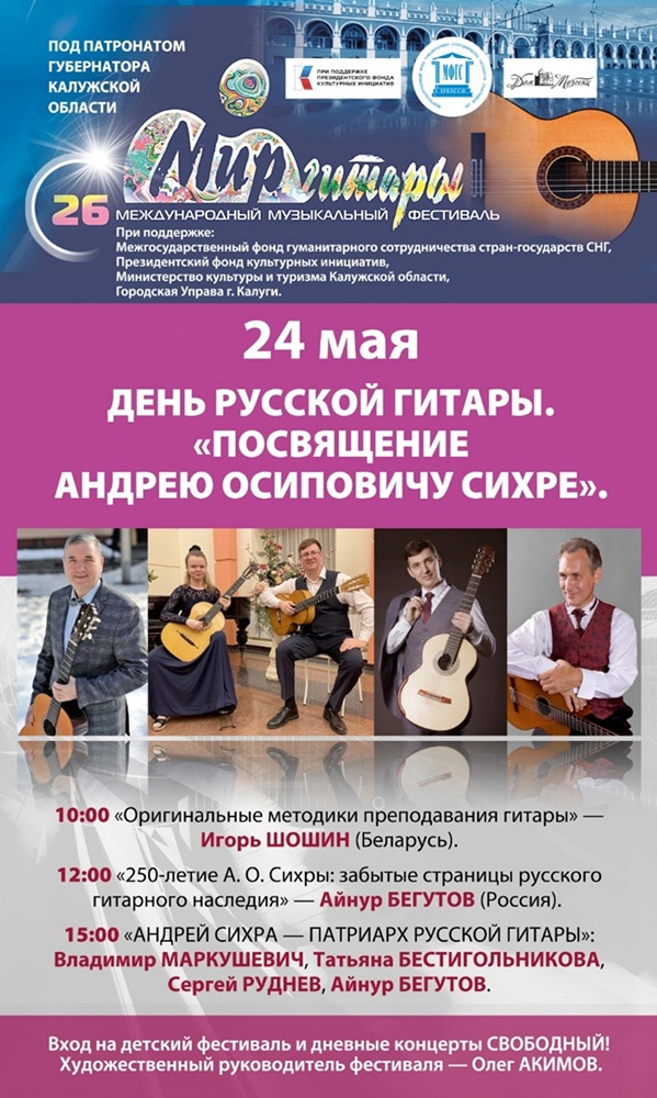 День, Дом музыки – День русской гитары. «Посвящение Андрею Осиповичу Сихре» - в честь 250-летнего юбилея патриарха русской семиструнной гитары.