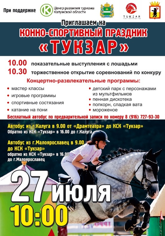 из г.Калуга :туда - в 09:00 от "Драмтеатра" до КСК "Тукзар"обратно - в 16:00 из КСК "Тукзар" до г. Калуга