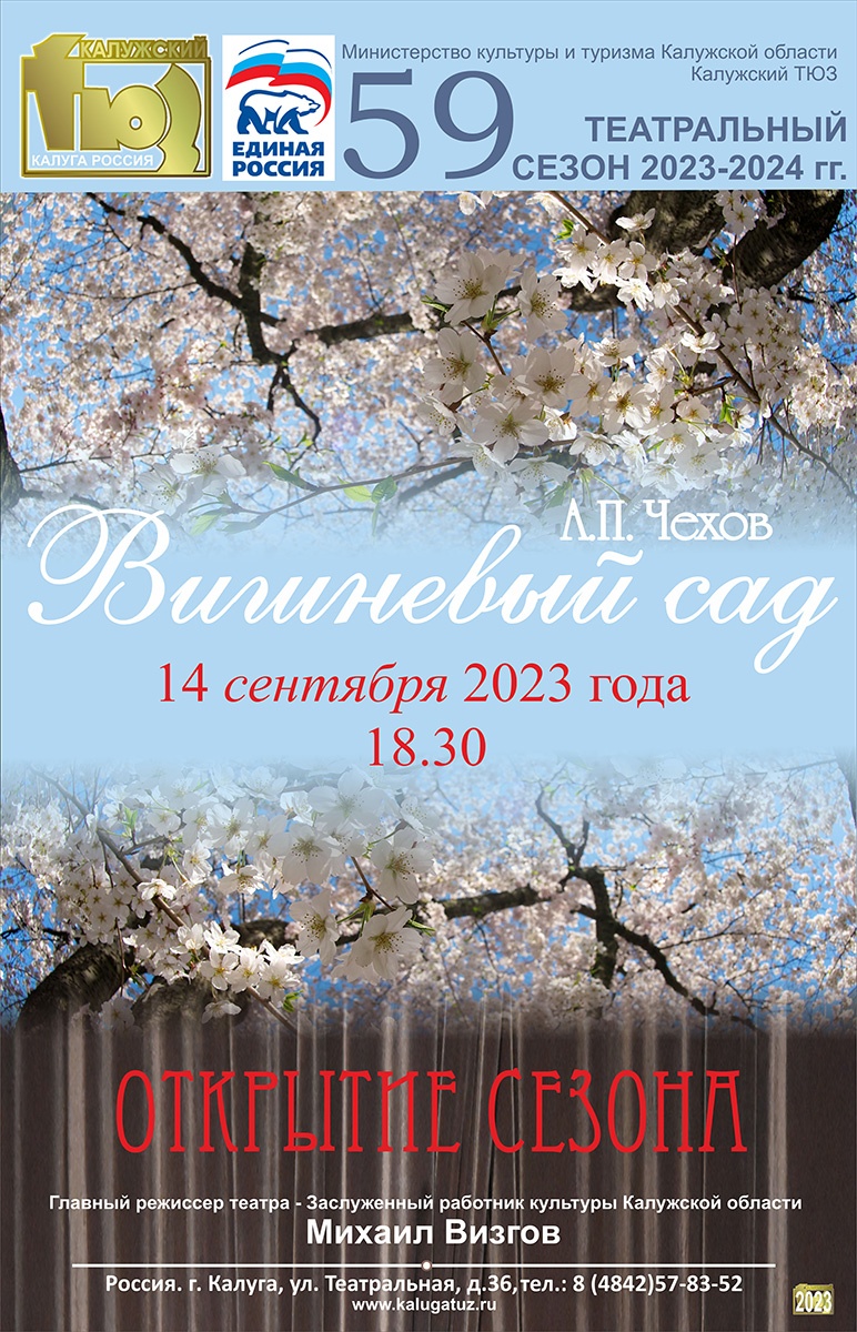 В калужском Театре юного зрителя полным ходом идут репетиции нового спектакля. Это «Вишневый сад» по пьесе А.П. Чехова, где русских классик мастерски исследует темы времени, перемен и пустоты. Премьера постановки 14 сентября откроет 59-й театральный сезон Калужского ТЮЗа.