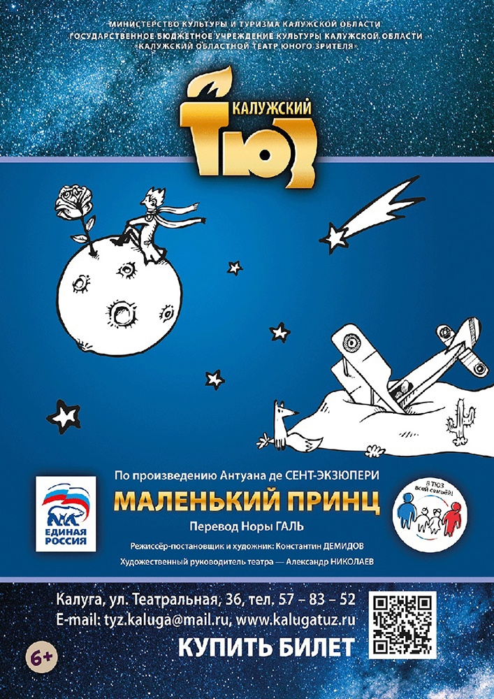 4, 5 и 7 апреля Калужский ТЮЗ представит постановку «Маленький принц» по одноименному произведению Антуана де Сент-Экзюпери. Все мы родом из детства... Самое знаменитое произведение Антуана де Сент-Экзюпери предстает перед зрителем мудрой и человечной сказкой-притчей. Просто и проникновенно она говорит о самом важном: о дружбе и любви, о долге и верности, о красоте и нетерпимости к злу. Герой спектакля - Маленький принц - посещает различные планеты в космосе, включая Землю. В пути он обретает и теряет новых знакомых, тем самым познавая жизнь во всех её проявлениях. В этом ему помогает Пилот, совершивший посадку в пустыне. Режиссер - Константин Демидов.