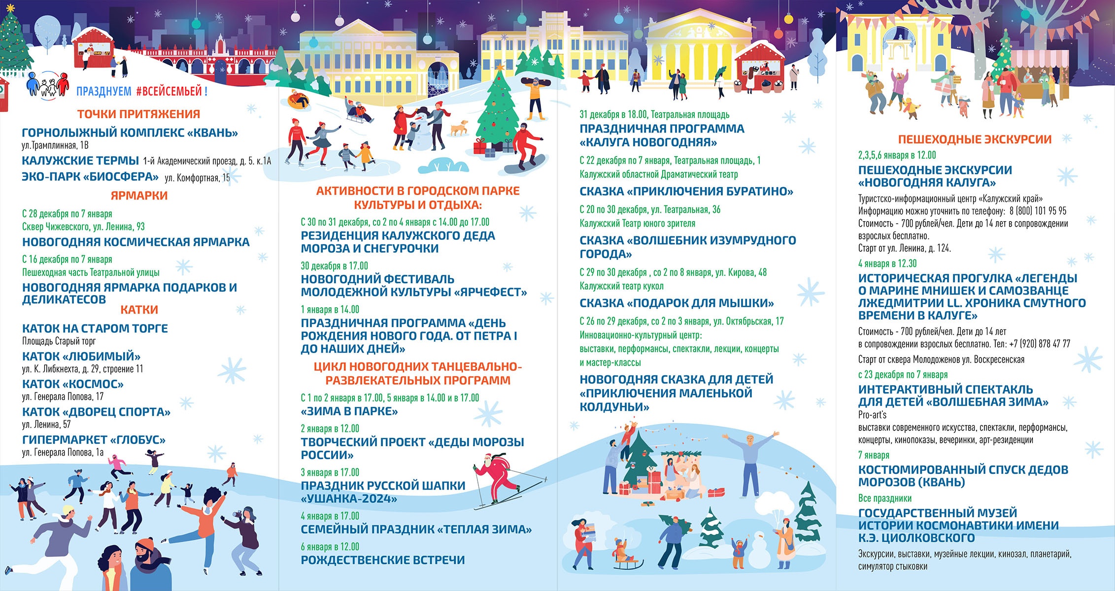 - 2-6 января – Пешеходная экскурсия "Новогодняя Калуга". Калуга, визит-центр ТИЦ "Калужский край"