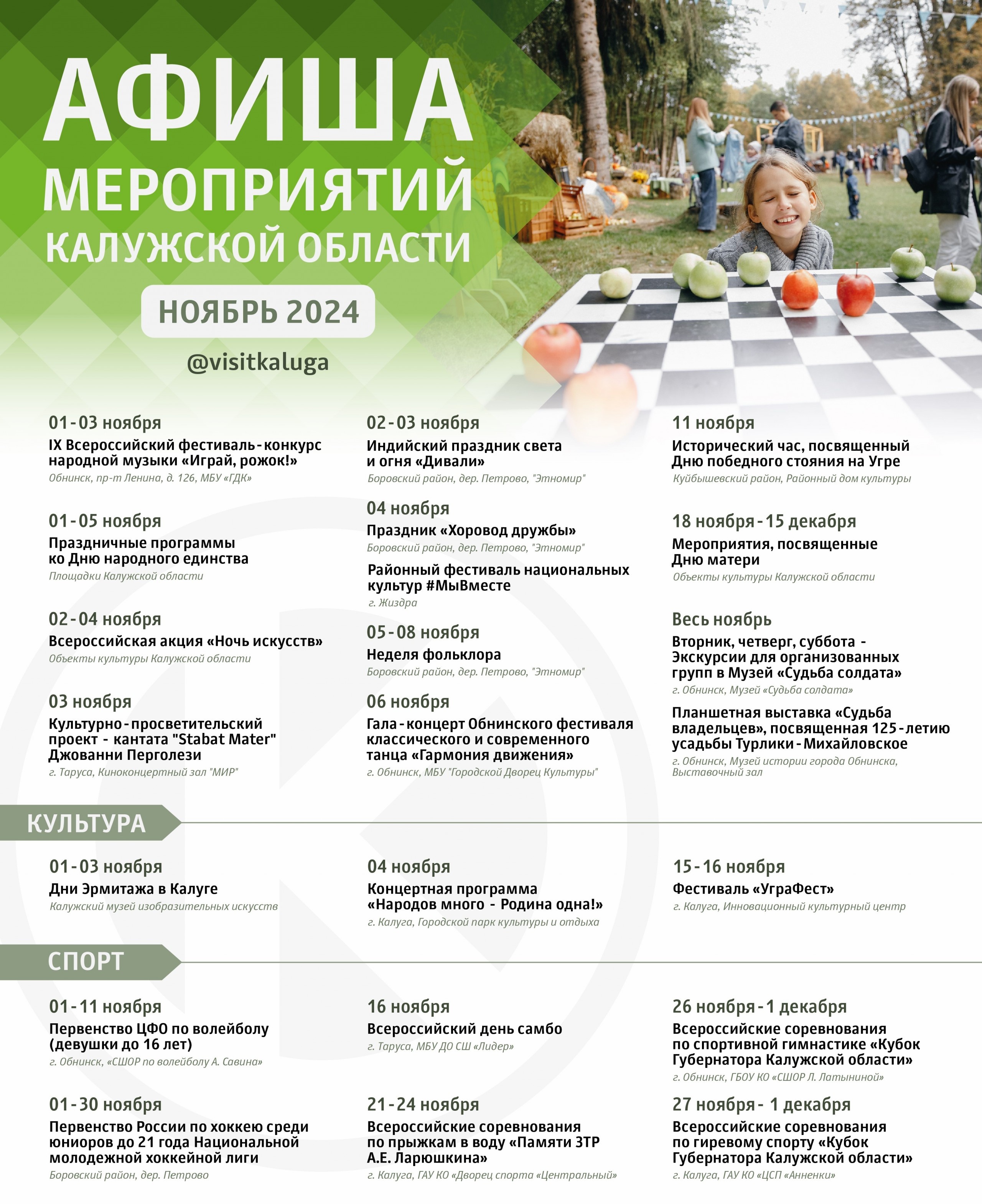 - IX Всероссийскиый фестиваль-конкурс народной музыки «Играй, рожок!», г. Обнинск, пр-т Ленина, д. 126, МБУ «ГДК»