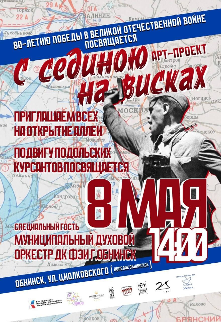 Выставка всех работ участников проекта состоится 8 мая 2025 года на АРТ-аллее «ГОРОД ПЕРВЫХ» по адресу: отель «Империал» (г.Обнинск, Киевское шоссе 11А) и по ул.Циолковского (мкр.Обнинское).