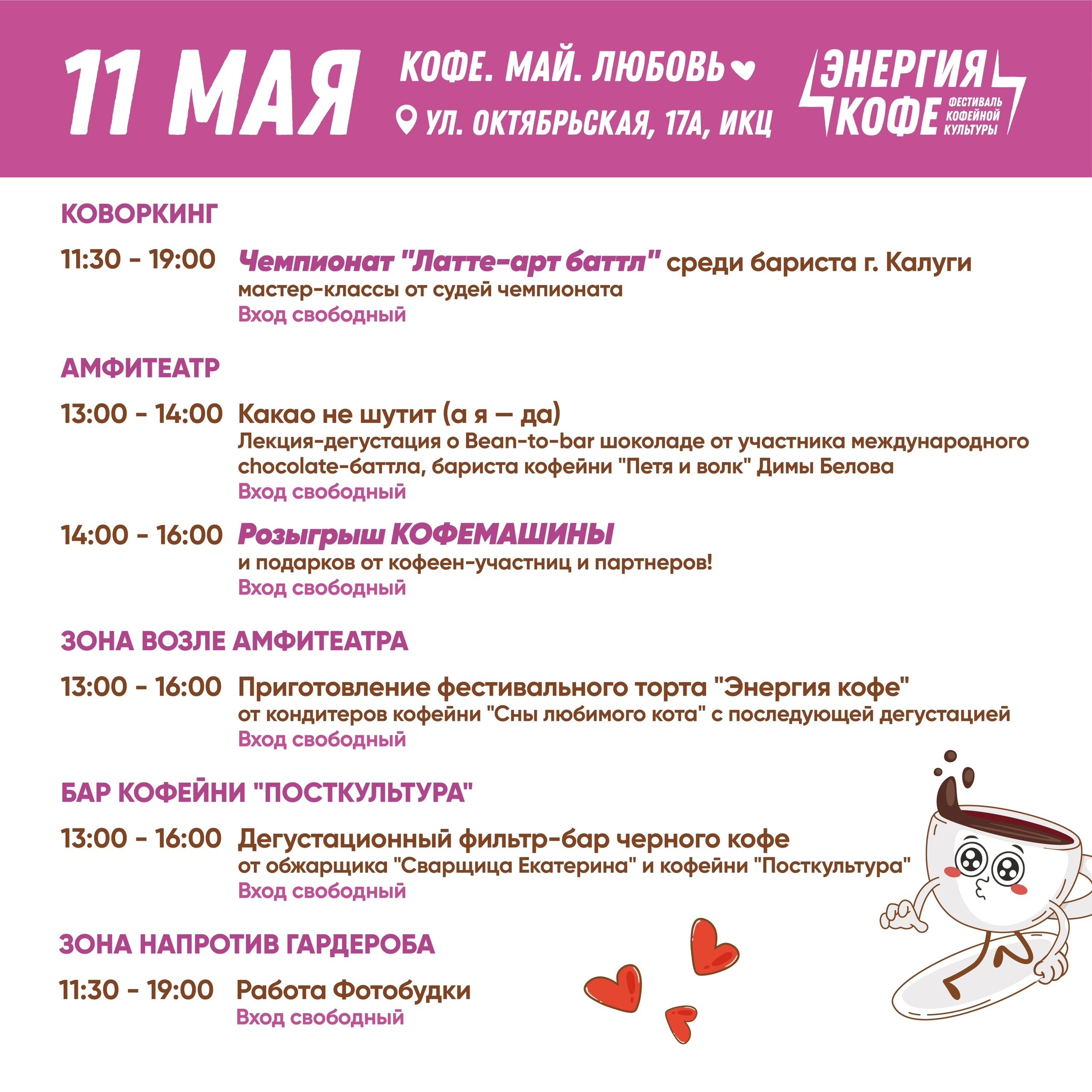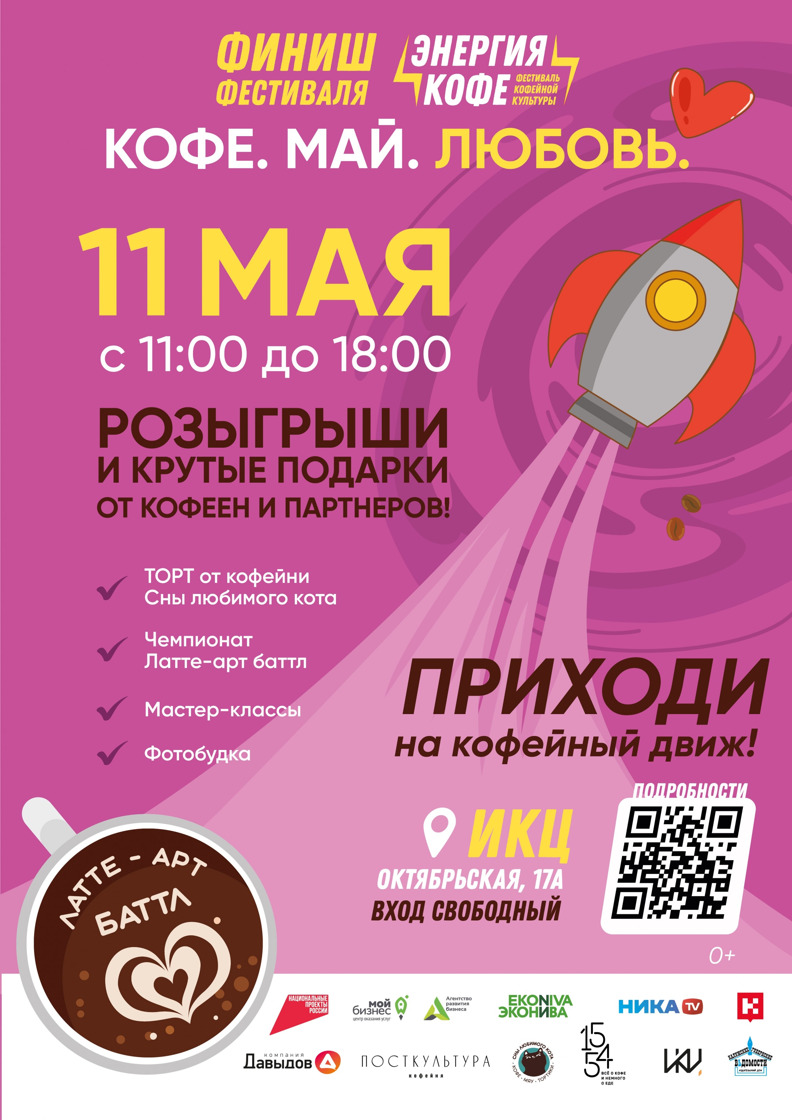 11 мая в Инновационном культурном центре состоится большой кофейный праздник «Кофе. Май. Любовь.», который станет ярким финалом фестиваля «Энергия кофе». Фестиваль проходит в Калуге с 11 апреля, и за это время тысячи горожан и гостей города смогли погрузиться в удивительный мир кофейной культуры