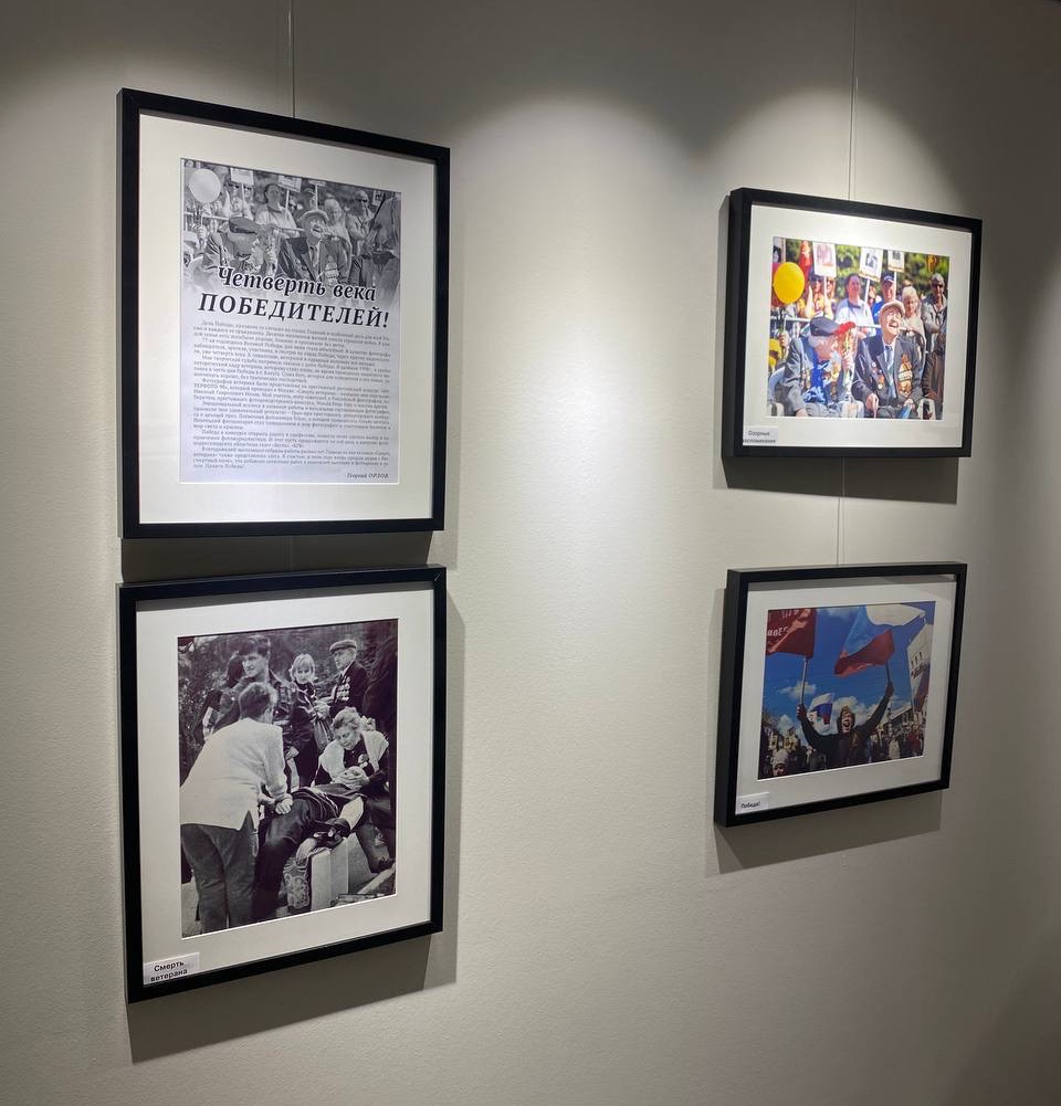 Выставка «Четверть века Победителей!» собрала фотоработы Георгия Орлова разных лет. Сердце выставки – фотография «Смерть ветерана». В этом году возобновили акцию «Бессмертный полк», что позволило Георгию добавить в фотоархив несколько новых работ, которые также представлены в выставочном зале визит-центра.
