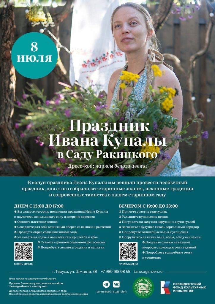 На праздник Ивана Купалы Сад Ракицкого приглашает погрузиться в мир обычаев древних славян. Здесь собрали все старинные знания, исконные традиции и сокровенные таинства. Участники праздника 8 июля узнают всё об Иване Купала, научатся использовать силу и энергию деревьев, погрузятся в мир чудодейственных трав, примут участие в обряде создания живой воды, освоите способы плести венки и создавать обереги из камней вместе с ювелирным дизайнером Анной Мукерия, создательницей бренда Egiterah и исследователем русской культуры. Гости вечернего мероприятия приоткроют завесу будущего с помощью семи старинных гаданий. Дресс-код – длинные белые платья!