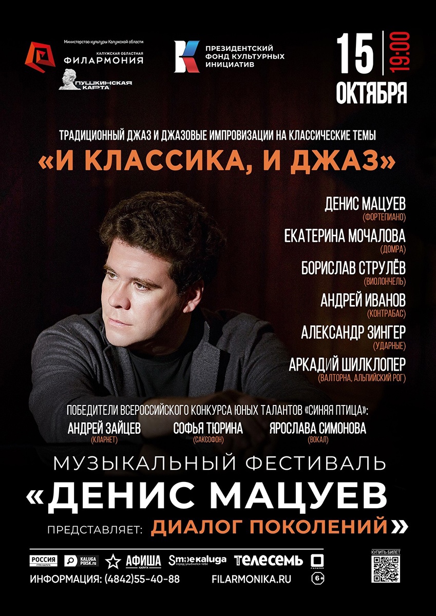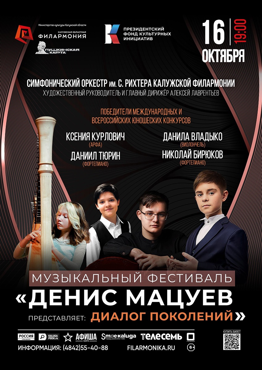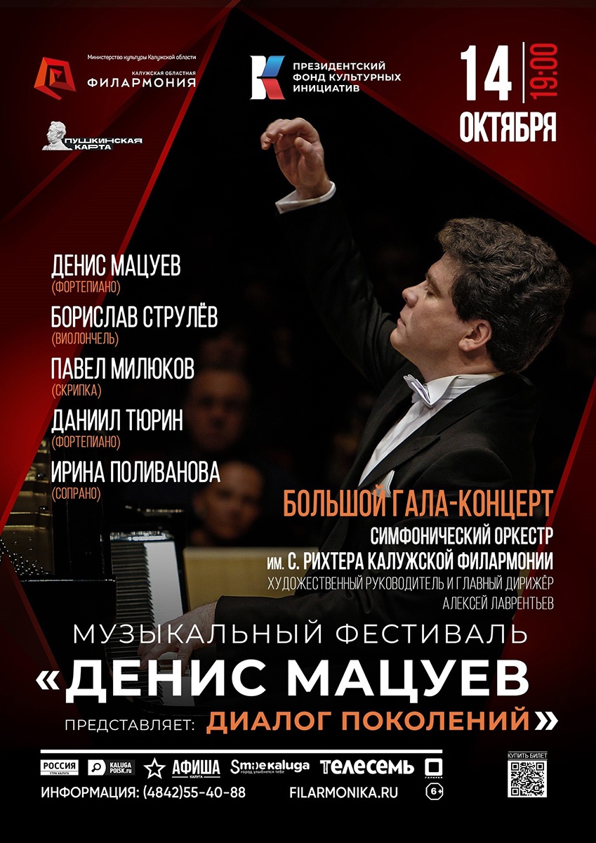 В Калуге состоится грандиозное культурное событие — музыкальный фестиваль «Денис Мацуев представляет: диалог поколений», художественным руководителем которого является сам маэстро! В 2022 году проект путешествует по всей России. Он объединяет на сцене музыкантов разных поколений, представителей российской исполнительской школы – от юных звёзд до всемирно известных музыкантов. В Калуге фестиваль пройдёт впервые и продлится 3 дня – 14, 15 и 16 октября на сцене Калужской областной филармонии.