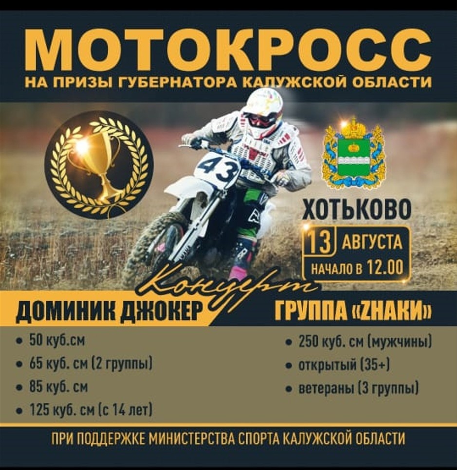 В субботу, 13 августа, в селе Хотьково Думиничского района состоятся традиционные международные соревнования по мотокроссу «Кубок губернатора Калужской области». Многие из гонщиков, участвовавших в мотокроссе в Думиничском районе, уже становились призерами ЦФО и России. Это престижное соревнование проводится в Хотьково почти каждый год.