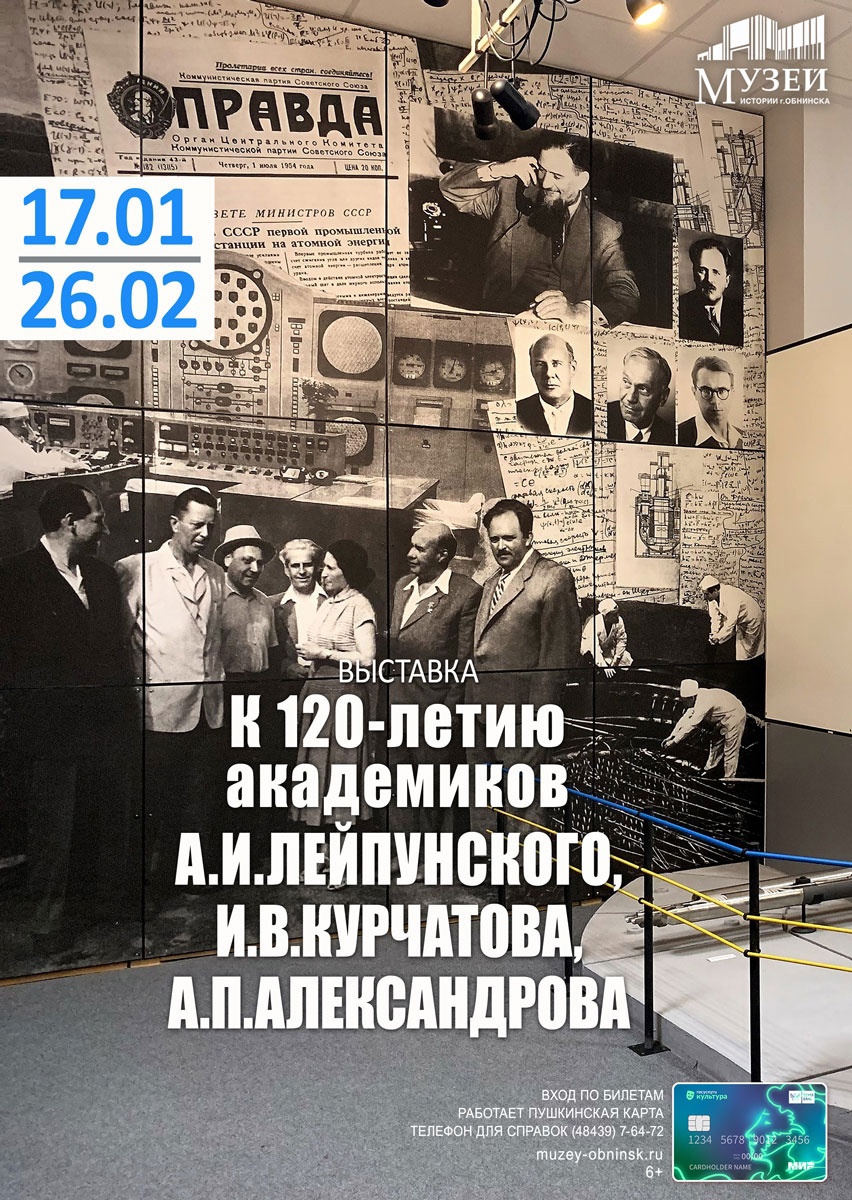 В январе родился Игорь Васильевич Курчатов – в этом году родоначальнику отечественной атомной индустрии исполнилось бы 120 лет. Такой же юбилей в 2023 году отмечается еще двумя академиками – А.И. Лейпунским и А.П. Александровым (все трое родились в 1903 году). 17 января в 18:00 в Музее истории города Обнинска открывается выставка, посвященная трем выдающимся советским ученым-физикам, имена которых навеки связаны с Обнинском.