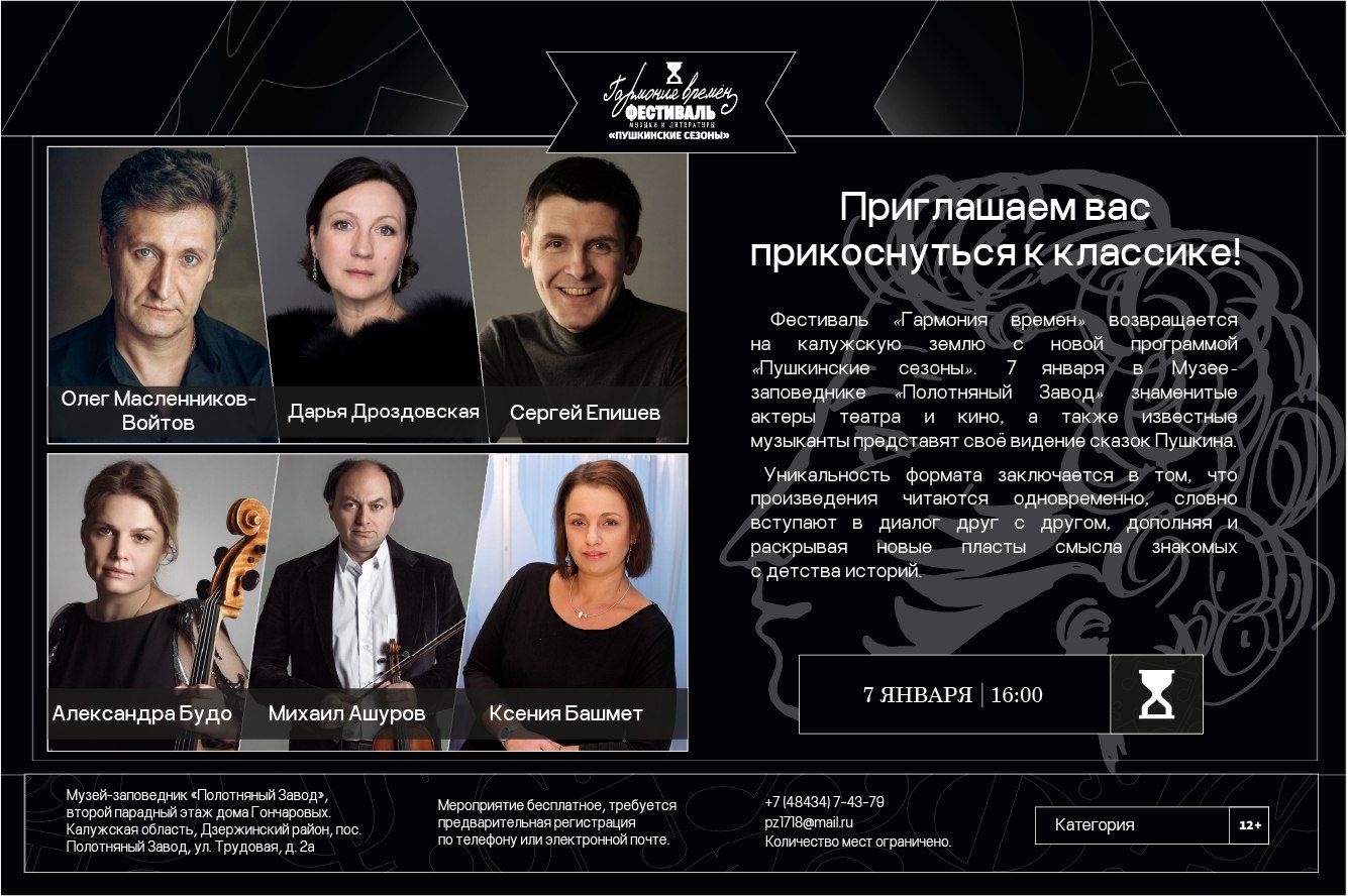 7 января 2024 года в 16.00 в музее-заповеднике «Полотняный Завод» состоится литературно-музыкальная программа «Пушкинские сезоны».