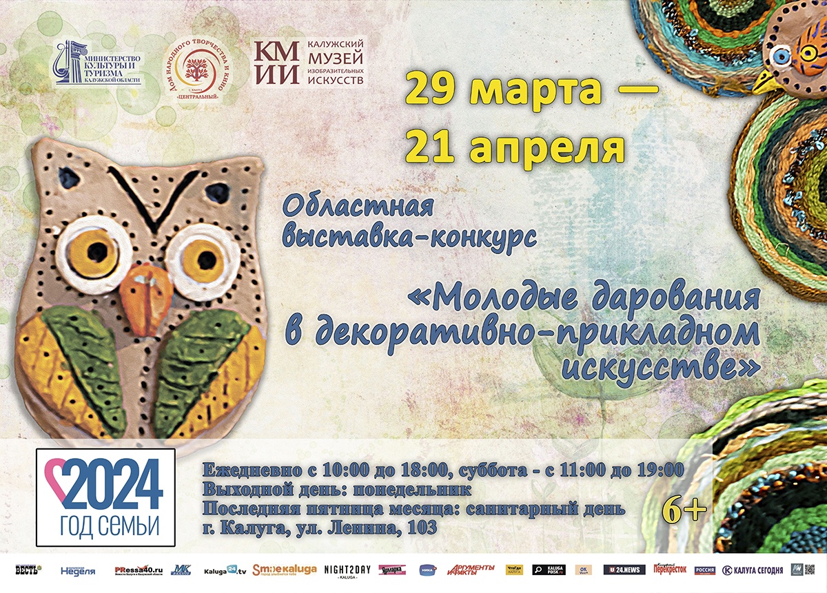 Экспозиция, сформированная из работ детей и подростков в возрасте от 7 до 16 лет, которые занимаются в кружках и студиях декоративно-прикладного искусства по всей Калужской области, начинает работу 29 марта в Информационно-образовательном и выставочном центре Калужского музея изобразительных искусств.