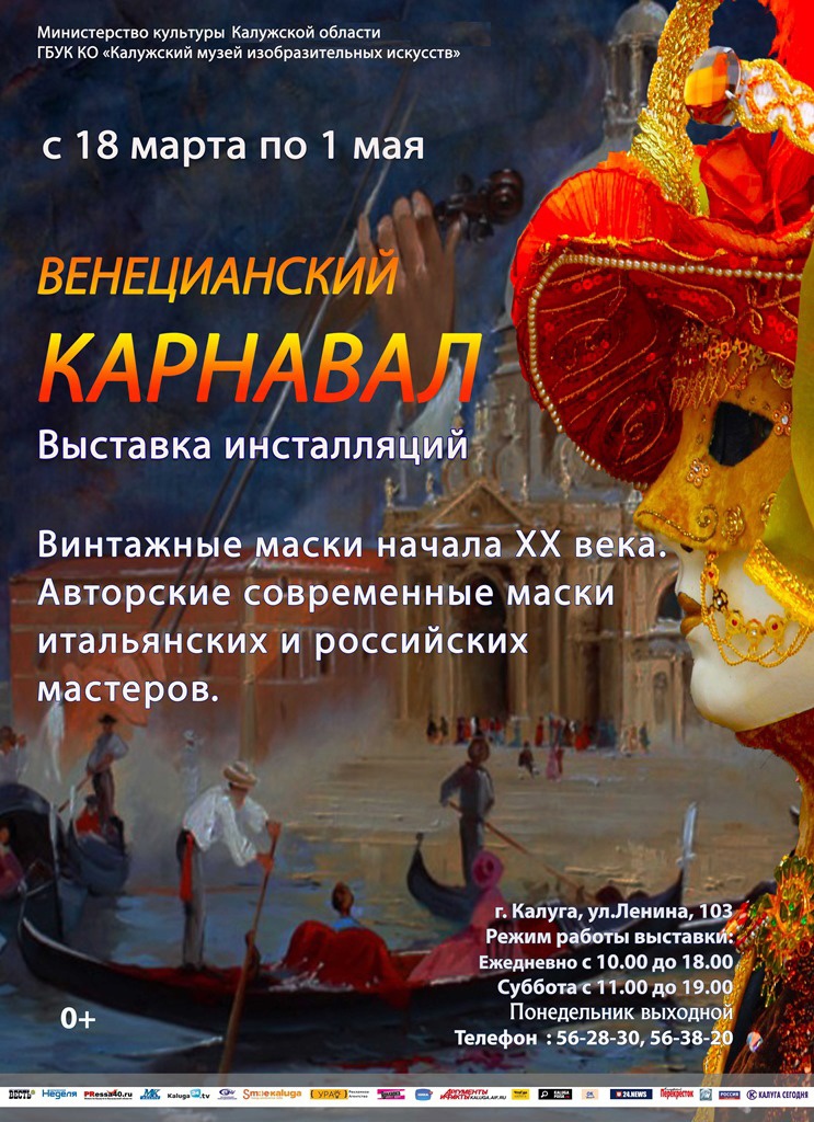 Погрузиться в загадочную атмосферу Венецианского карнавала приглашает выставка винтажных масок, которая начала работу 18 марта в Выставочном центре Калужского музея изобразительных искусств.
