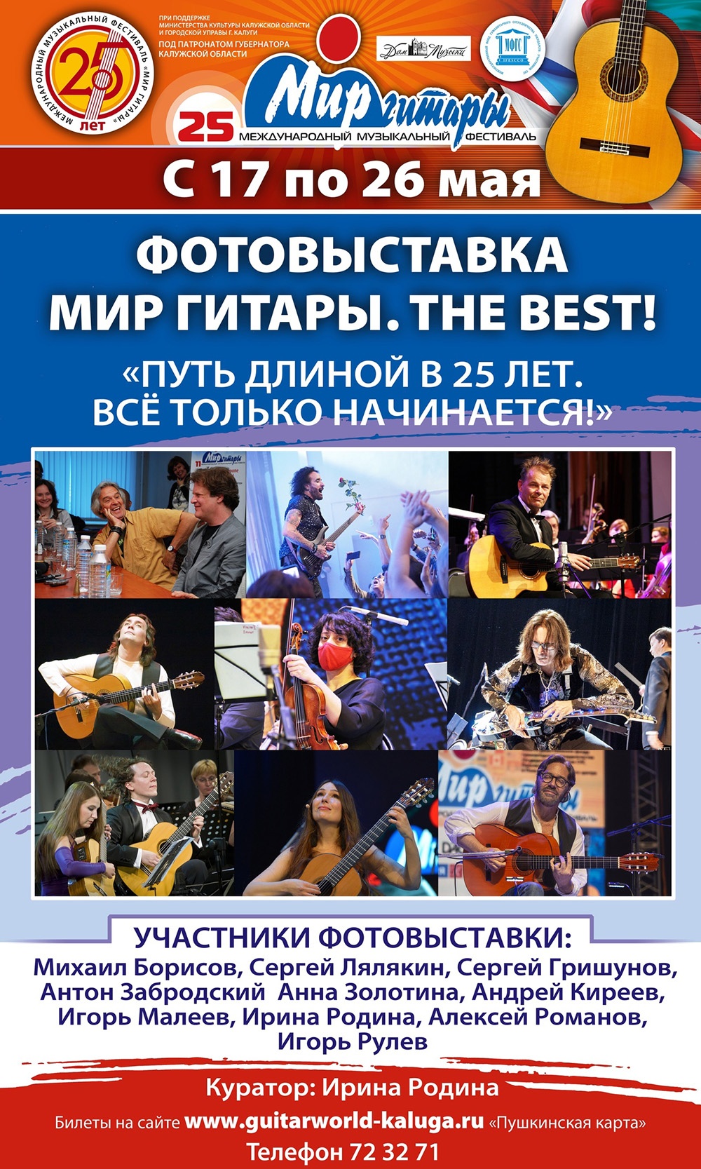«Мир гитары» — уникальное явление в культурной жизни России и один из крупнейших гитарных фестивалей в мире. В 2018 году фестиваль включен в Национальный календарь событий России. За 25 лет «Мир гитары» представил российским поклонникам гитарной музыки широкую палитру ярких имен культовых российских и зарубежных исполнителей: Пако Де Лусия, Стив Вай, Джон Маклафлин, Эл Ди Меола, Ларри Кориэлл и многие другие.