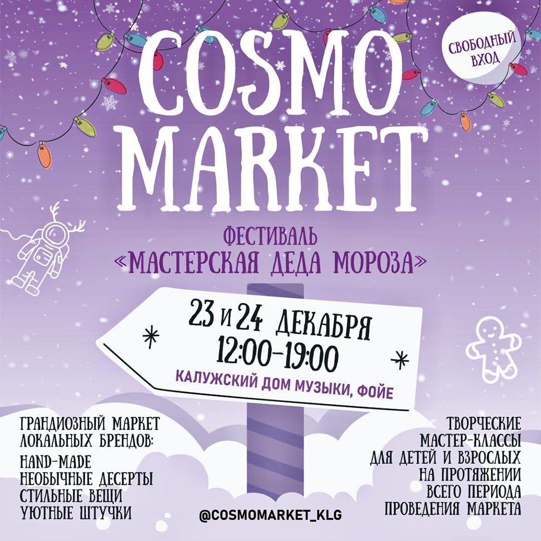 - 23 и 24 декабря с 12:00 до 19:00 – Фестиваль "Мастерская Деда Мороза" проекта CosmoMarket. Дом музыки, ул. Кирова, 6/46