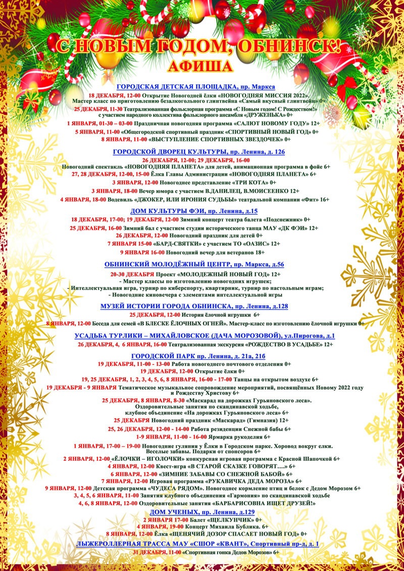 !!! На новогодних каникулах Обнинск готов порадовать своих гостей интересными мероприятиями.