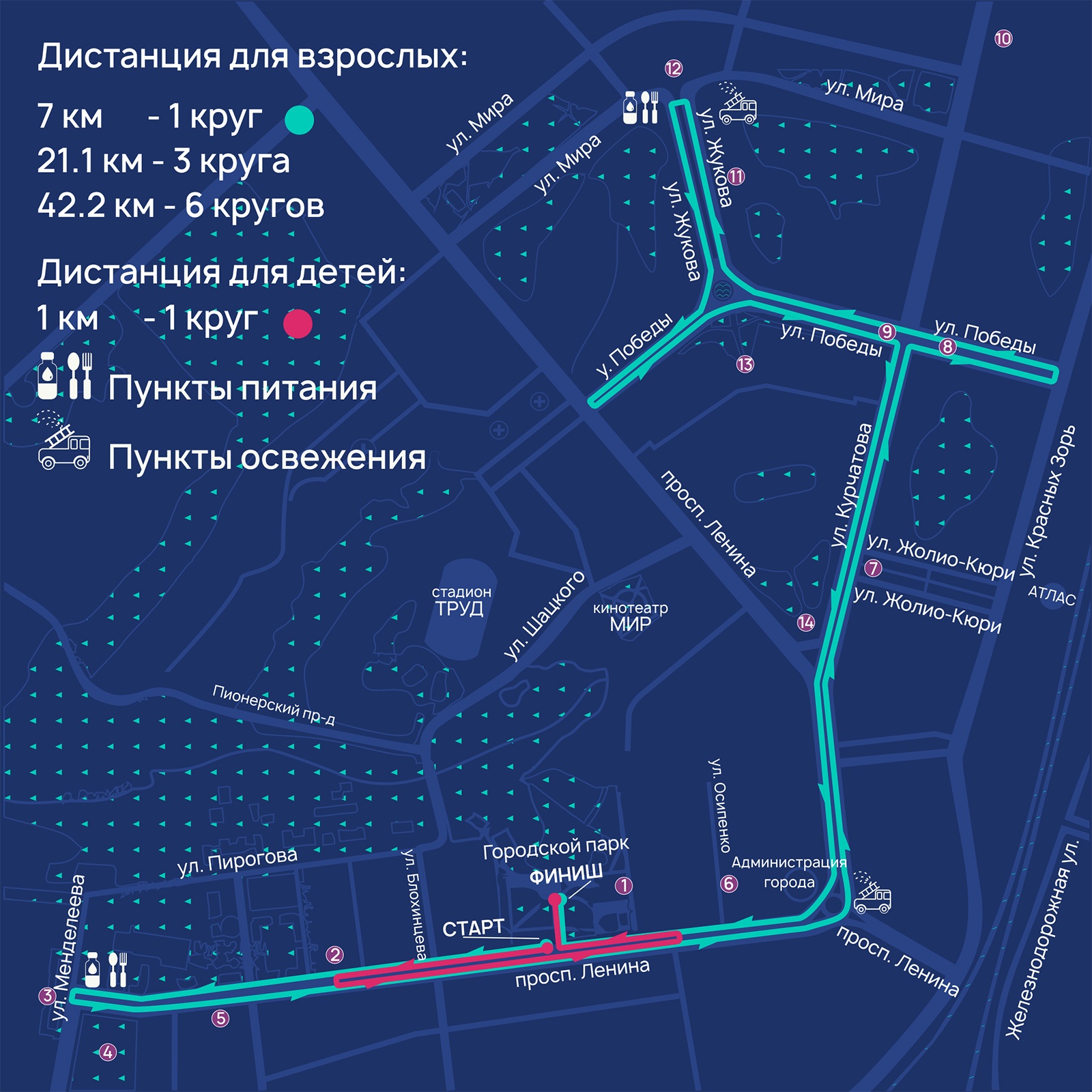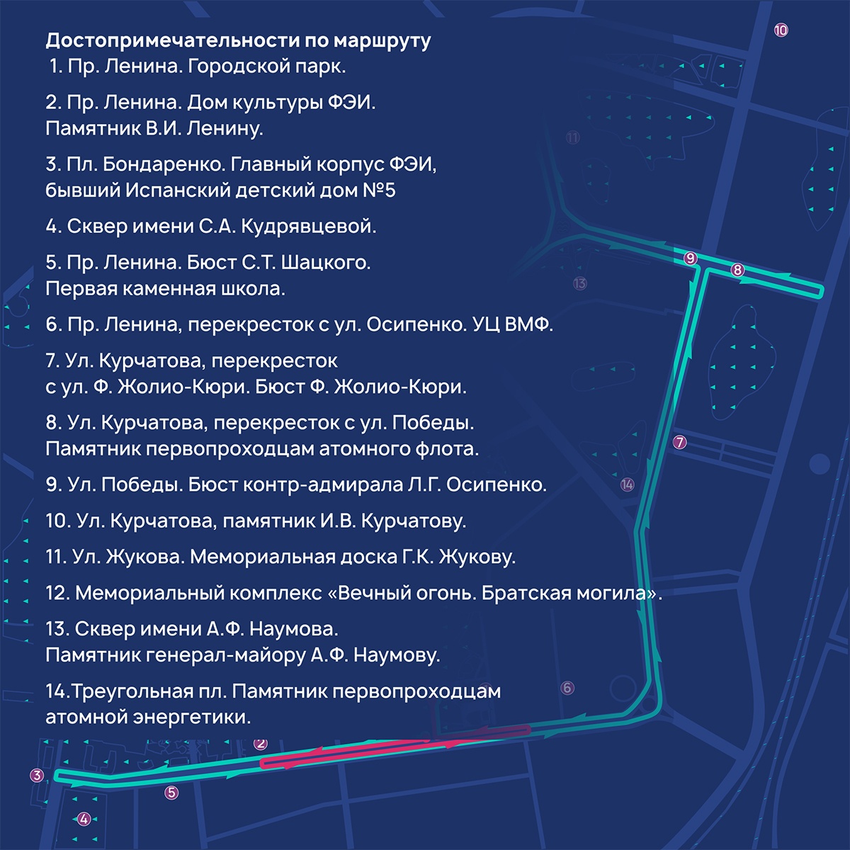 В 2022 году участники пробегут рядом с «атомными» достопримечательностями Обнинска: Первой в мире АЭС, памятниками Первопроходцам атомной энергетики и Первопроходцам атомного подводного флота и другими. Ведущий расскажет о достопримечательностях, которые будут пробегать марафонцы.