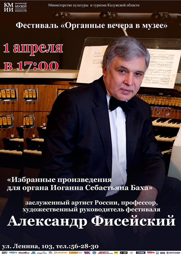 В Калужский музей изобразительных искусств возвращаются органные вечера. 1 апреля в красном зале выступит один из ведущих органистов мира, заслуженный артист РФ, профессор Российской академии музыки им. Гнесиных Александр Фисейский.