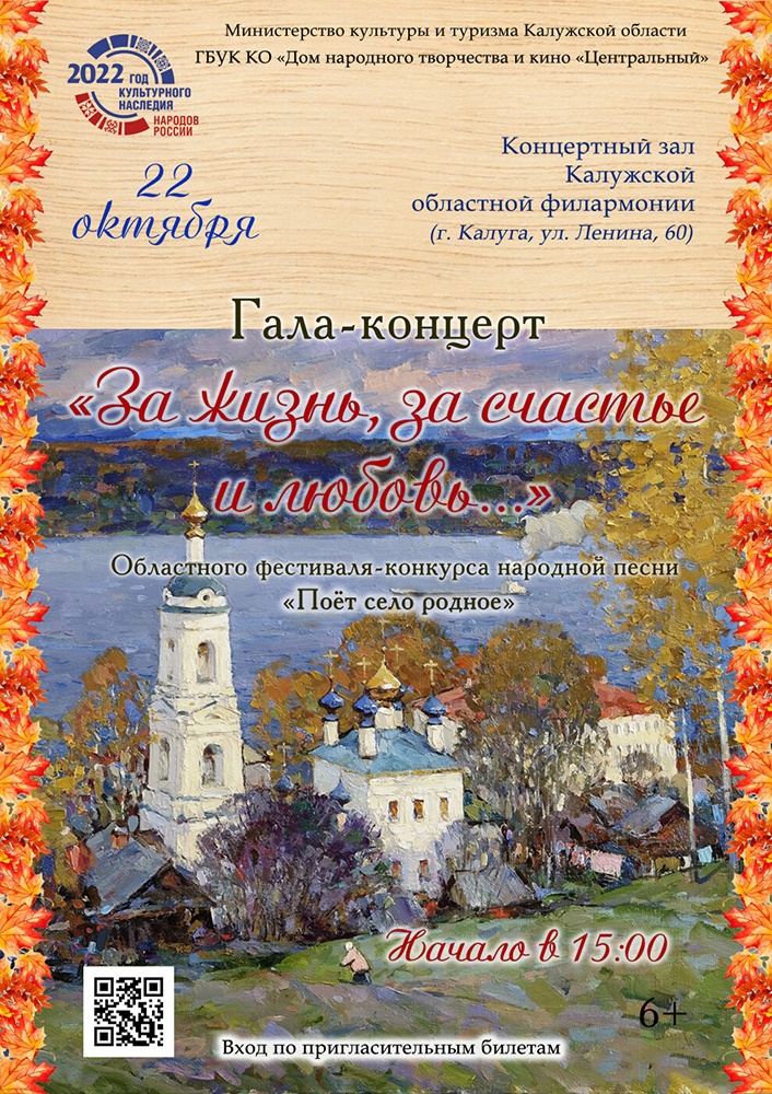 Областной (в рамках всероссийского) фестиваль-конкурс народной песни «Поёт село родное» объединил десятки творческих коллективов области. Лучшие номера победителей 2022 исполнят 22 октября на гала-концерте «За жизнь, за счастье и любовь…». Праздник народной культуры с неповторимыми распевами и ярким колоритом старинных и современных народных костюмов и танцев пройдет на сцене калужской филармонии, вход по пригласительным билетам.