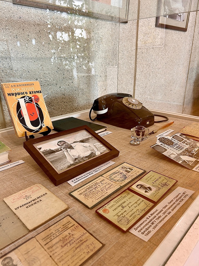 Представлены реликвии из фонда Музея истории города Обнинска – документы, фотографии, мемориальные предметы и памятные сувениры, которые дополняют материалы постоянно действующей экспозиции и дают представление о значении создания первой в мире АЭС.