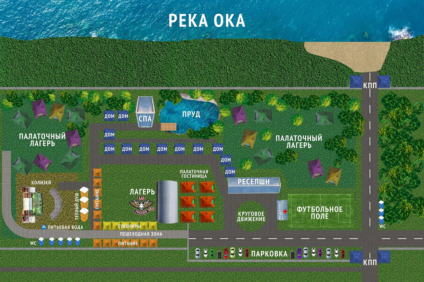 Установка палатки на всей территории фестиваля – бесплатно. Будут бесплатные питьевая вода, дрова, биотуалеты. Горячий душ платно. В 200 метрах река Ока. Костры разводить можно исключительно в мангале. Штраф за разведение костра на земле 5000 р. Организуется разнообразный фуд корт.