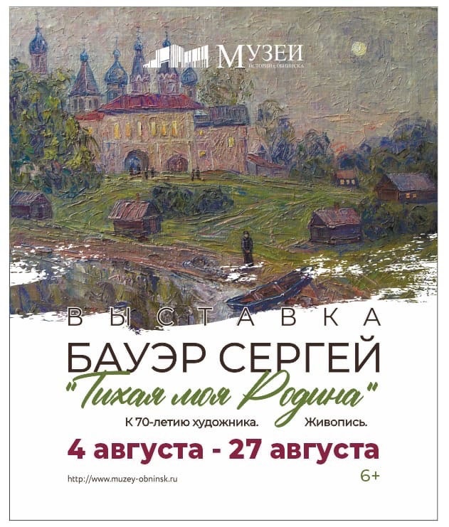 Пейзажи русской провинции заполнили выставочный зал Музея истории города Обнинска. Здесь 4 августа начинает работу персональная выставка живописи Сергея Бауэра «Тихая моя Родина» — юбилейная: в 2022 году малоярославецкому художнику исполняется 70 лет.