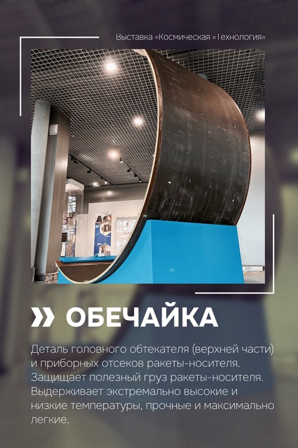 На выставке посетители могут ознакомиться с этапами производственной эволюции ОНПП «Технология» в создании изделий из полимерных композиционных материалов для отечественной аэрокосмической отрасли, основными достижениями и новейшими разработками, в том числе с технологией создания углепластиковых изделий. Посетители увидят уникальные подлинные образцы высокотехнологичных изделий, документы, фотографии и видеоматериалы, предоставленные ОНПП «Технология» имени А.Г. Ромашина. Также на выставке представлены макеты российских ракет-носителей: модернизированной ракеты-носителя «Протон-М», новейшей ракеты-носителя «Ангара», ракеты-носителя «Союз», а также макет многоразовой транспортной системы «Энергия-Буран» и многое другое.