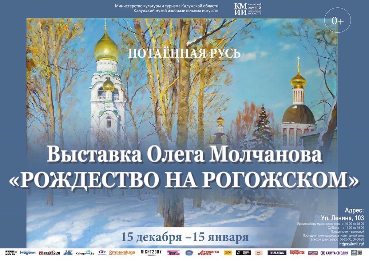 Прекрасные пейзажи святых мест и самобытность русской глубинки – картины, исполненные заслуженным художником России Олегом Молчановым, представлены в выставочном центре Калужского музея изобразительных искусств до середины января. Выставка «Потаённая Русь. Рождество на Рогожском» посвящена истории и культуре старообрядчества.