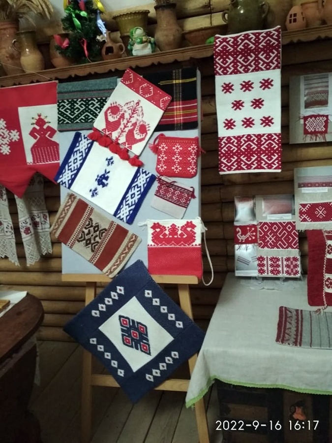Представленные изделия выполнены в технике одного из старинных видов узорного ткачества – браного. Искусство браного ткачества заключается в том, что в процессе изготовления ткани мастерица украшает полотно различными узорами.