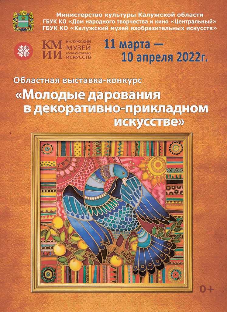 Сохранению и развитию традиционного и современного декоративно-прикладного искусства посвящена ежегодная Областная выставка-конкурс «Молодые дарования в декоративно-прикладном искусстве», которая проводится с 11 марта по 10 апреля в зале Информационно-образовательного и выставочного центра Калужского музея изобразительных искусств.