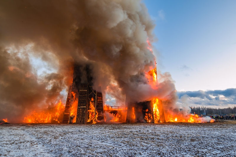 Идея проекта буквально соответствует названию. Мост, сожженный на Масленицу в Никола-Ленивце, выражает необратимые изменения, происходящие в жизни всего мира и в жизни каждого отдельного человека. Мост, вырастающий прямо из поля, — поэтический образ, символ пространства, и, в конечном счете, символ времени.