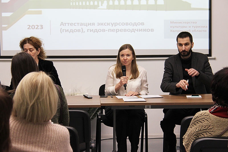Поводом к обсуждению стал федеральный закон, запрещающий с 1 июля 2023 года экскурсоводам и гидам-переводчикам осуществлять экскурсионную деятельность без аттестата. Присутствовавшим на встрече экскурсоводам рассказали об этапах аттестации, действующих в Калужской области, среди которых 2-часовое тестирование и практическое задание, представляющее собой демонстрацию части экскурсии на маршруте. Кроме аттестата на 5 лет, в случае успешного прохождения экзамена экскурсовод или гид-переводчик получает также нагрудную идентификационную карточку и вносится в Единый федеральный реестр экскурсоводов (гидов) и гидов-переводчиков.