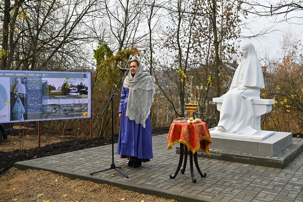 Анна Громова отметила символичность того, что мероприятие проходит в преддверии дня рождения Елизаветы Федоровны, в этом году также исполнилось 130 лет со дня принятия ею Православия. Она была не только великой княгиней царствующего дома Романовых, но и благотворительницей, основательницей обители милосердия. Её любовь к Калуге была связана с особым почитанием русских святынь. В день 400-летия со дня кончины святого преподобного Лаврентия Калужского 10 августа 1915 года Елизавета Фёдоровна посетила Казанский девичий монастырь, у стен которого и установлен памятник.