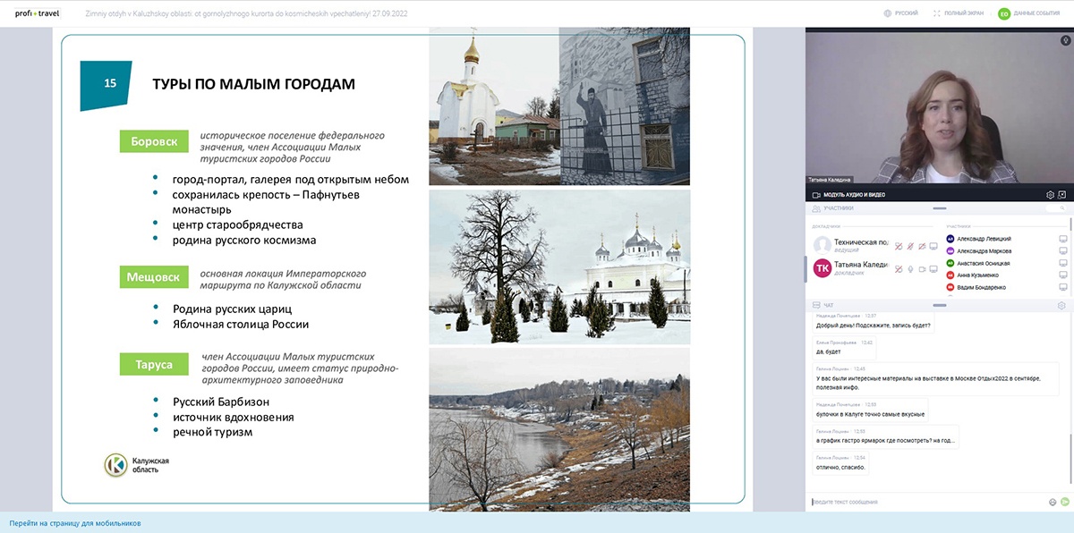 Онлайн-презентация туристических возможностей Калужской области на предстоящий осенне-зимний сезон прошла 27 сентября в рамках форума, ставшего настоящей витриной туристического продукта России – «Знай наше: зима 2022/23».
