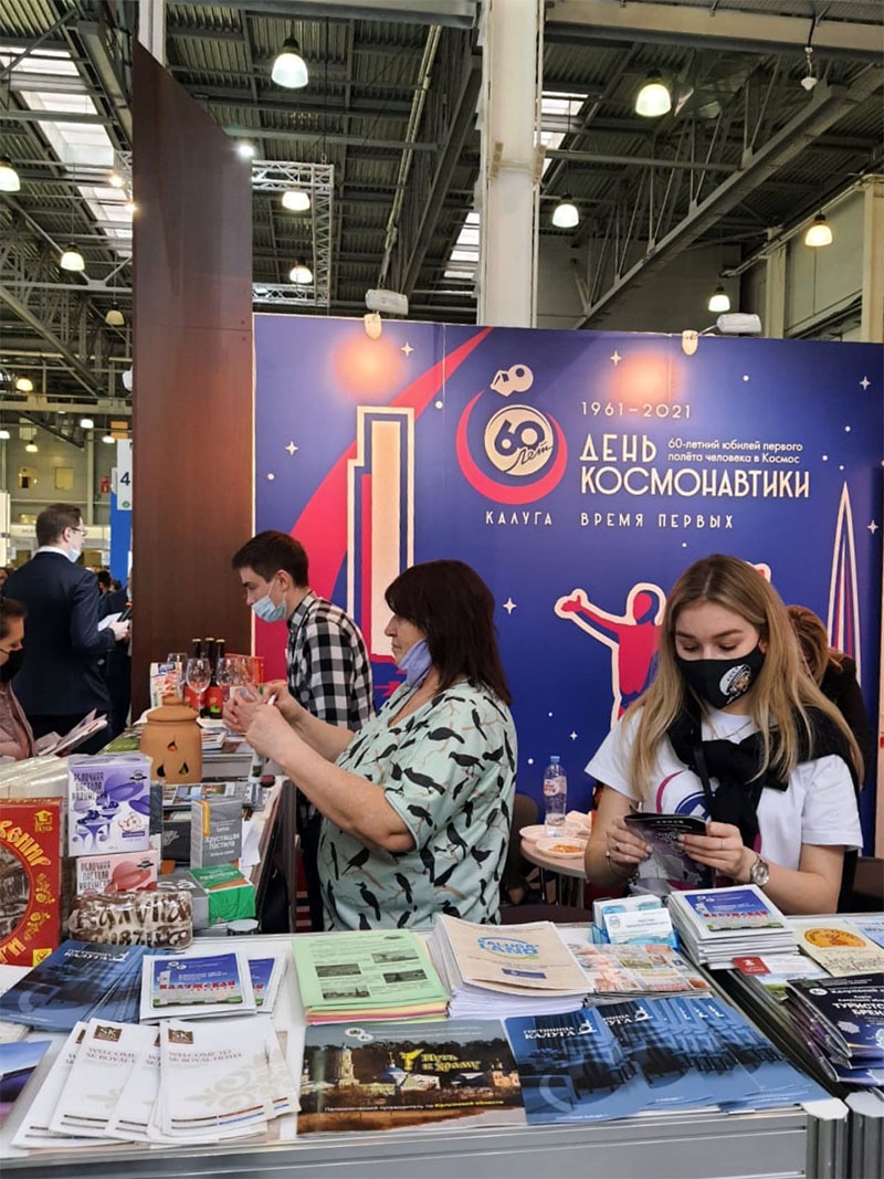 Калужскую область на выставке представляет Туристско-информационный центр «Калужский край» с единым стендом региона. Экспозиция Калужской области посвящена 60-летию первого полета в космос Ю.А. Гагарина и оформлена в космическом стиле. В выставке принимают участие представители администрации Мещовского района, туристско-информационные центры Тарусы, Боровска, калужские туроператоры и представители туристических объектов региона. Экспозицию дополняют калужские гастрономические бренды, ассортимент которых расширился, по сравнению с прошлым годом: можно попробовать продукцию марки "Калужские лакомства" от ООО «ПК «Яблочко» (зефир, пастила, смоква, конфитюр), калужское тесто от ЗАО «Хлебокомбинат», калужские пряники от ООО «Академия вкуса», натуральный сидр от КФХ «Аблъко», калужское печенье от КФ «Хлебный спас», яблочные снеки марки «Sattva». Отель «Амбассадор» обеспечил стенд премьерой: вниманию посетителей выставки представлена VR-экскурсия «Полет над Калугой» - воспользовавшись техникой, любой желающий может увидеть все улицы нашего города в неожиданных и недоступных пешеходам ракурсах.
