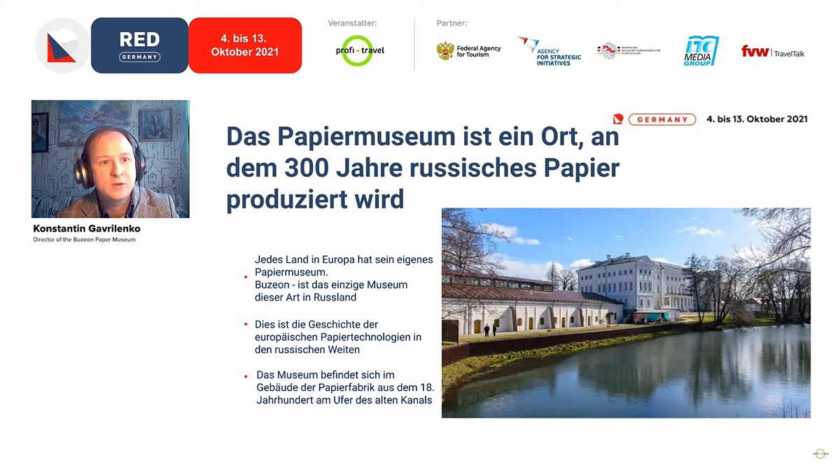 Калужская область участвует в Russian Expo Days Germany 2021 – онлайн-выставке туристического потенциала России для профессионалов турбизнеса из Германии, Австрии и Швейцарии, которая проходит с 4 по 13 октября.