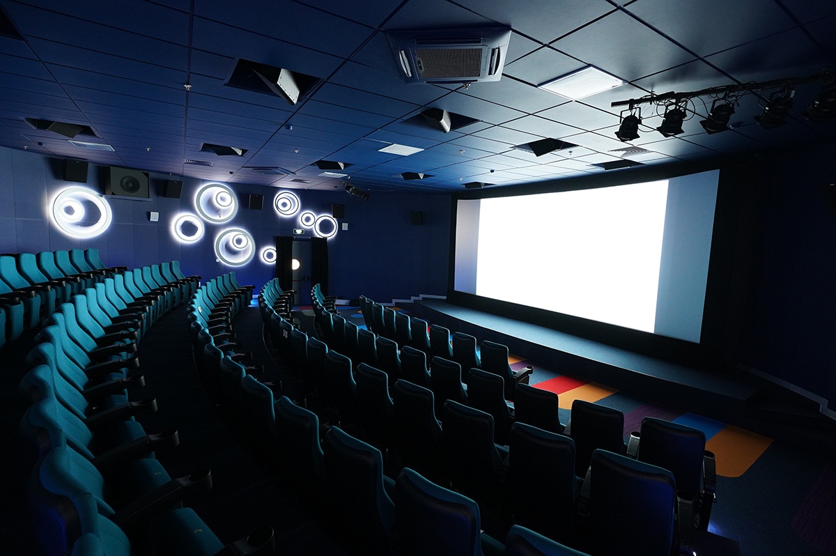 Музейный кинозал «Космос» – это кинотеатр новейшего формата. Благодаря инновационной системе многоканального звука DOLBY ATMOS, которая создаёт объёмный, многомерный, живой, реалистичный звук, вы услышите каждый шорох в фильме и полностью погрузитесь в события, происходящие на экране. В зале установлены комфортные кресла с мягкими сидениями и спинками. Кинозал рассчитан на 121 зрителя плюс 4 специально оборудованных места для маломобильных групп населения. Вход на кинопоказ осуществляется через новое здание ГМИК имени К.Э. Циолковского, кинозал расположен на -2 этаже.