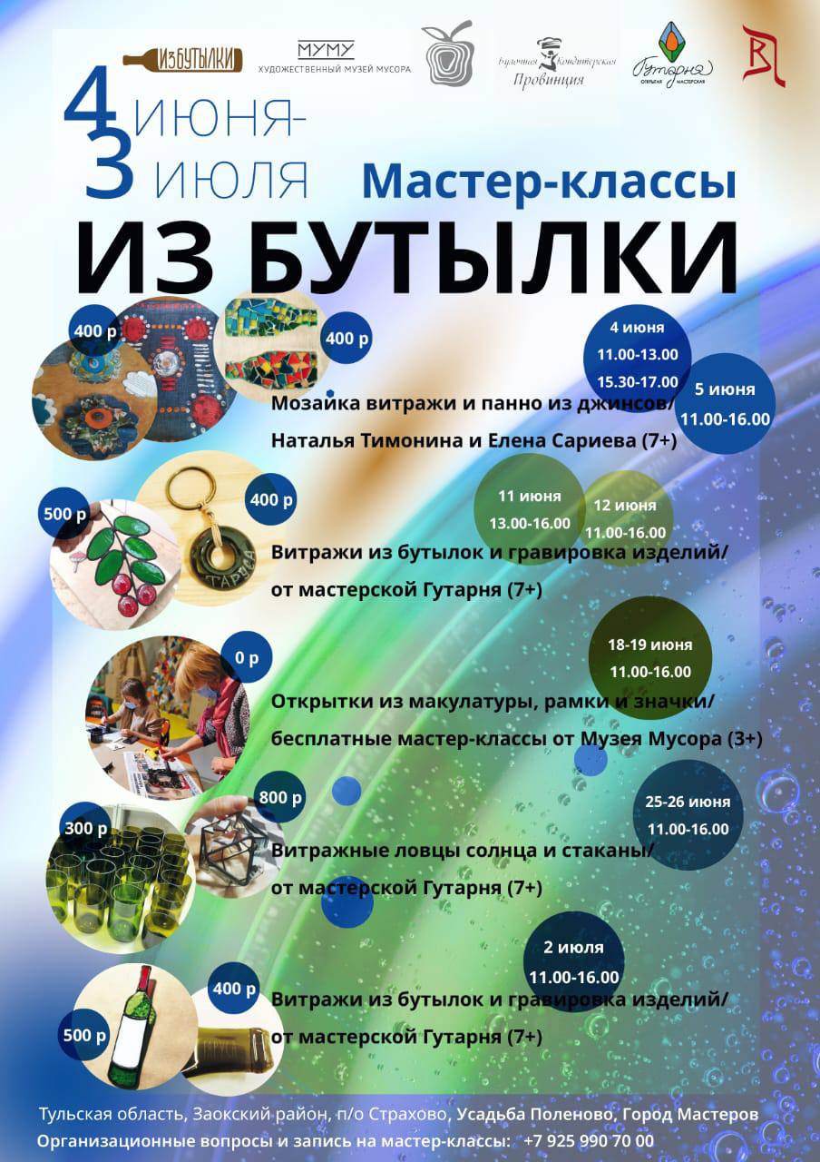 Многогранный проект запускается 4 июня в усадьбе Поленово (Тульская область) тарусскими мастерами стекольных дел. На выставке-фестивале художественных и прикладных изделий «Из Бутылки» встречаются одновременно искусство, туризм и экология.