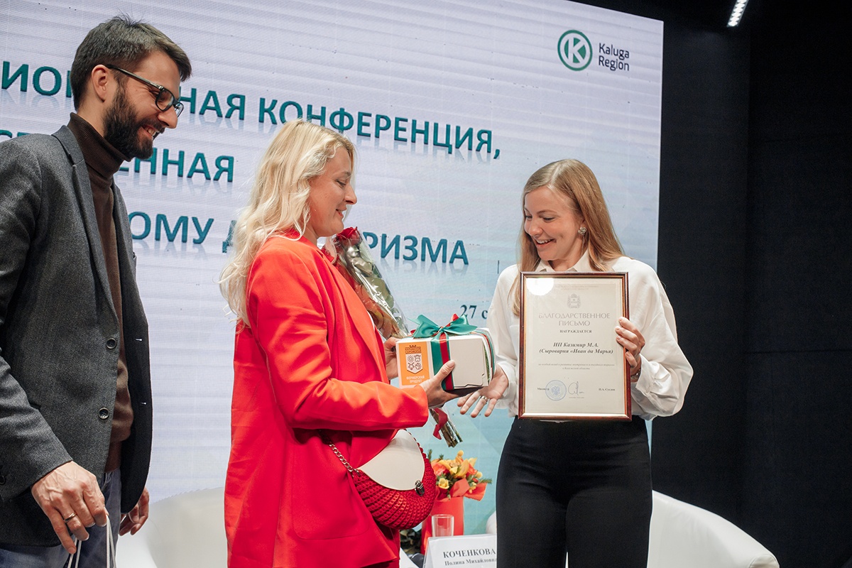 Символическую ленточку в честь открытия нового ТИТ перерезали заместитель министра культуры и туризма, начальник управления развития туризма Калужской области Полина Коченкова, директор Государственного музея истории космонавтики Наталья Абакумова и главный архитектор Калуги Алексей Комов.