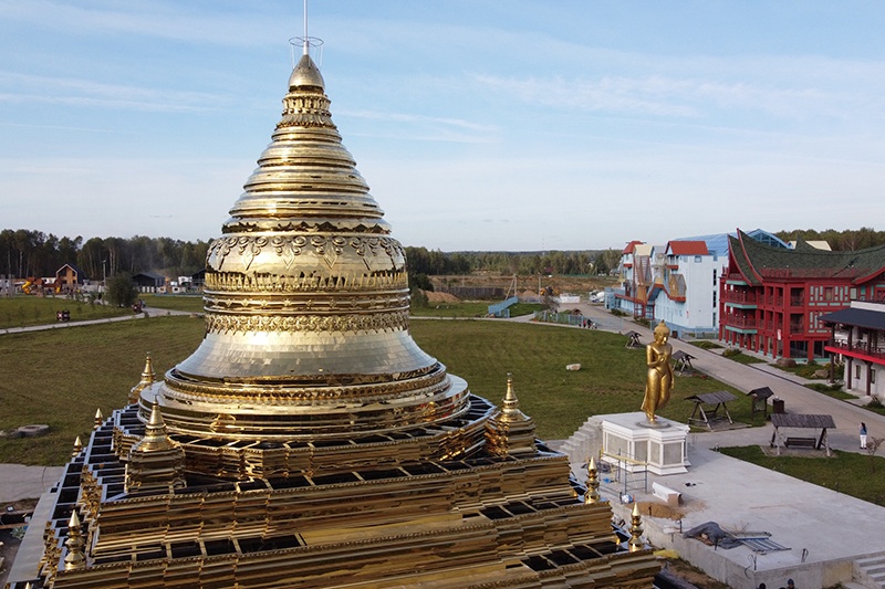 - 17 февраля 2019 года в парке состоялось знаменательное событие: привезли позолоченную буддийскую ступу, прообразом которой стала священная ступа Швезигон в Мьянме.