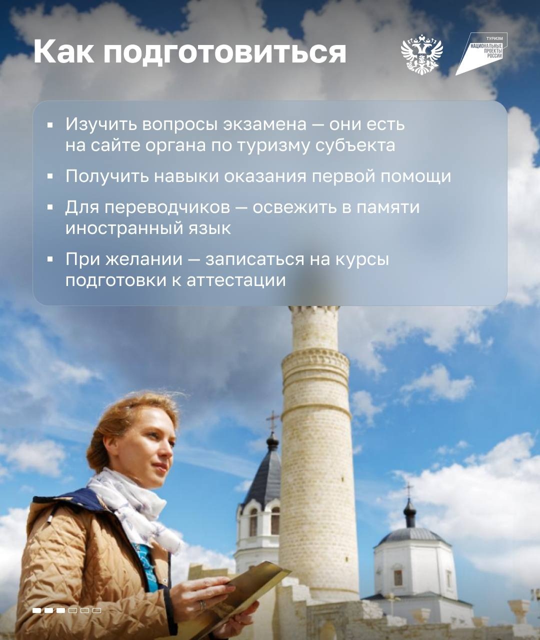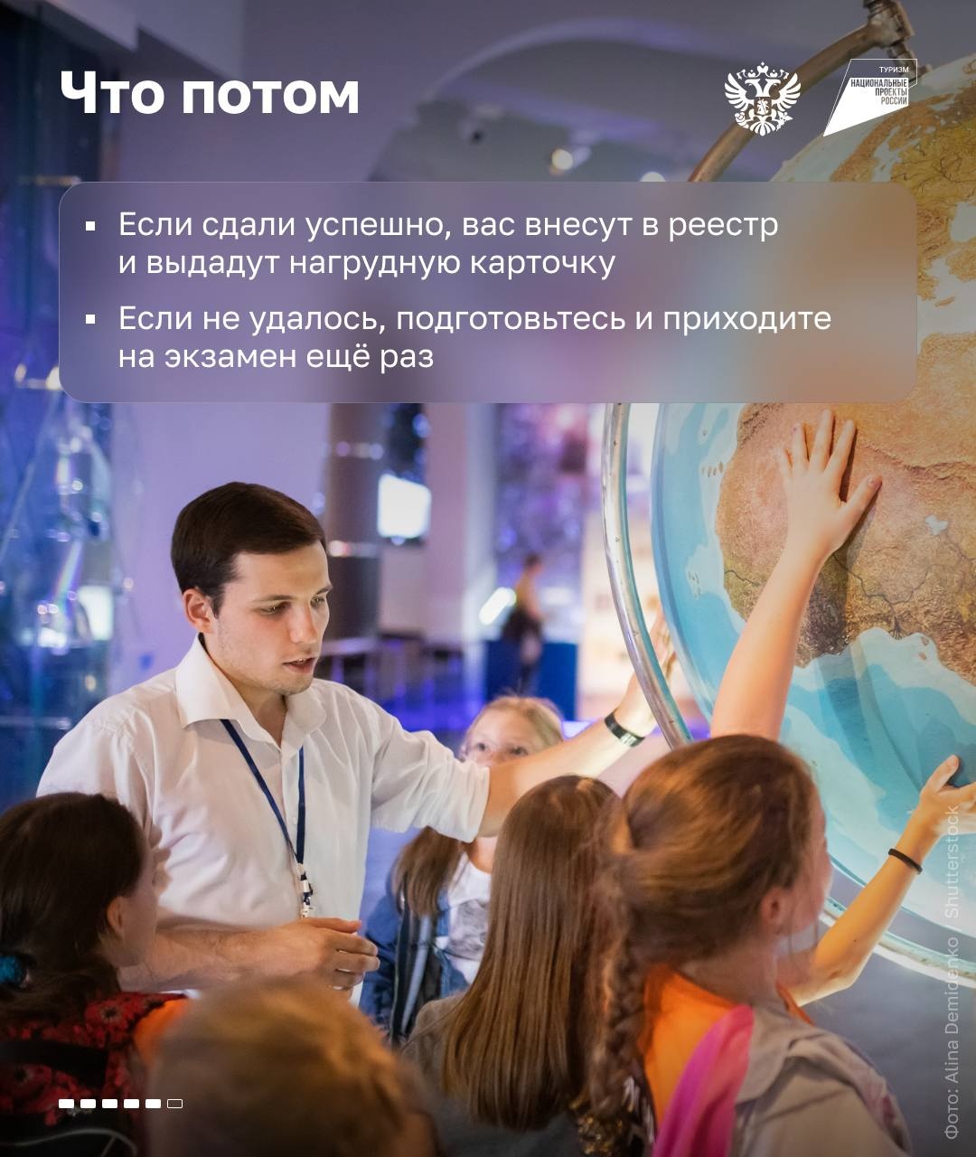 В карточках ниже — инструкция от объясняем.рф, как пройти аттестацию и сдать экзамен. А подробнее о ней и о том, как туристу проверить гида, читайте здесь.